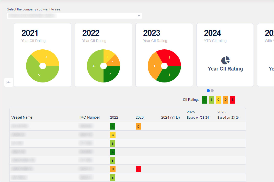 - Fleet overview, the yearly CII rating of your entire fleet in an easy overview