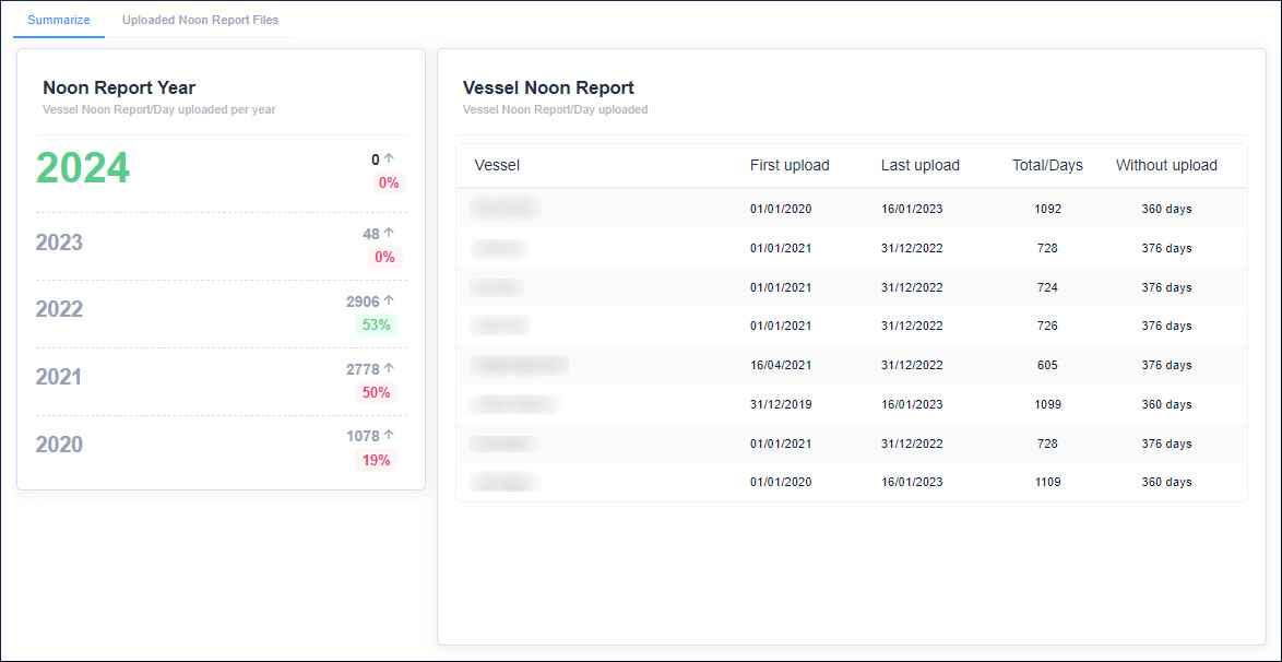 - Noon Report Overview, monitor the input of your vessel's noon reports
