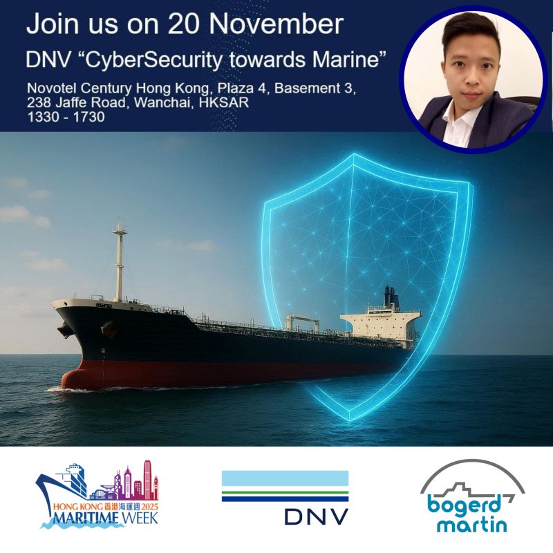 Our colleague Ivan Tam will be one of the panelist at DNV's "CyberSecurity towards Marine" session at Hong Kong Maritime week.